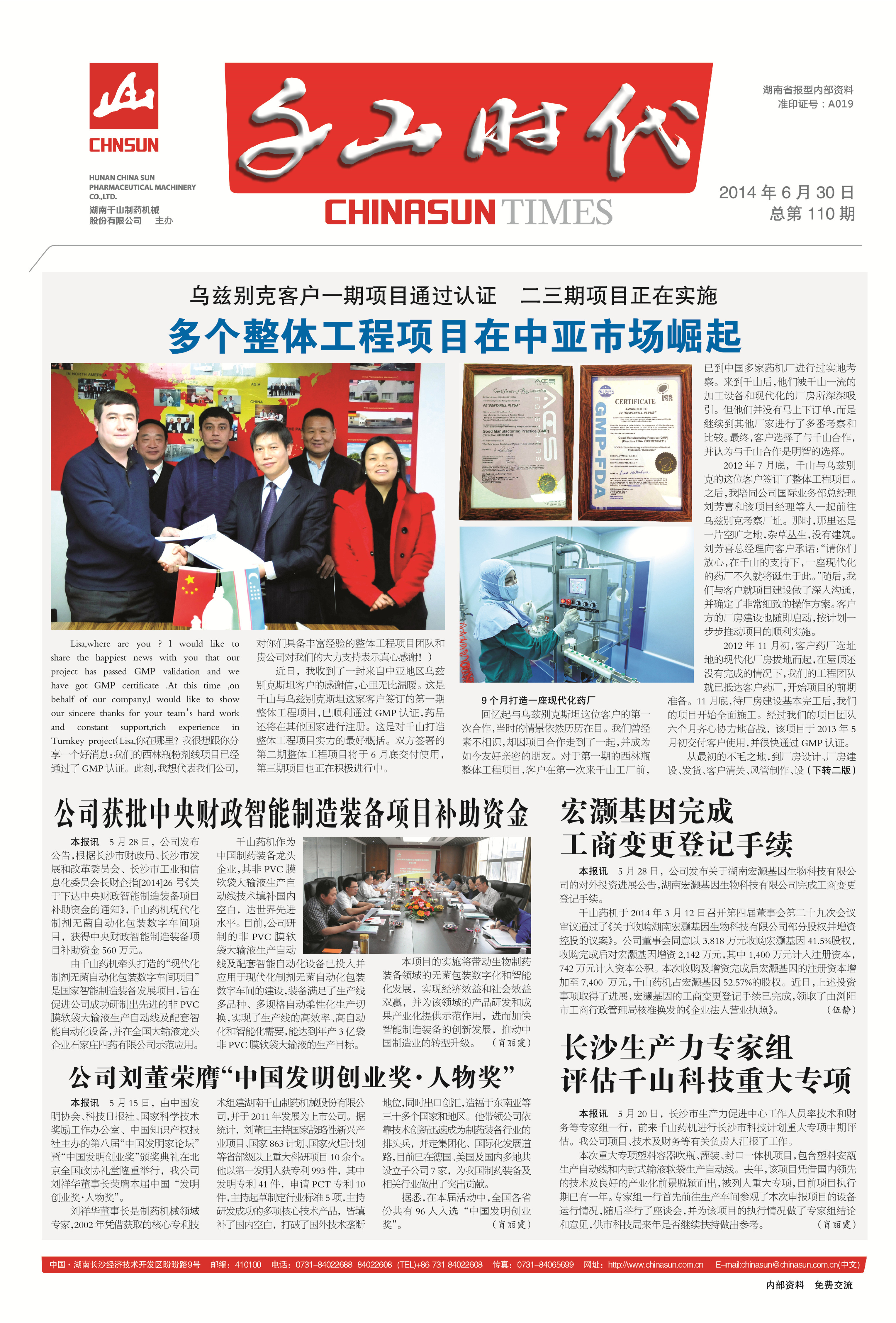 公司位于國家級長沙經濟技術開發區,公司已獲批設立“湖南省制藥機械智能化工程技術研究中心”。